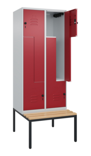 De kasten uit de serie Classic Plus bieden u veel meer dan alleen de typische basiseisen. De constructie is gelast en hierdoor zeer stabiel en duurzaam. Maar u hoeft niet in te leveren op stijl. Door het industriële design met klassieke ventilatiesleuven, smalle zijkanten en inliggende deuren zien de lockers er aantrekkelijk en strak uit, vooral bij opstelling in een rij. Z-lockers zijn een ruimtebesparende en efficiënte oplossing voor kleine kleedkamers of garderobes voor personeel. De ruimtebesparende kast heeft op hetzelfde oppervlak 2 vakken per compartiment, zodat 2 mensen persoonlijke eigendommen kunnen opbergen. In tegenstelling tot bij de locker is het ophangen van langere kledingstukken dankzij de Z-vorm geen probleem