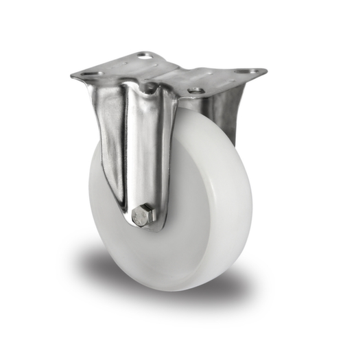 "description": "draagverm. 200kg, Ø 125mm, polyamide-banden, RVS-glijlager, velg polyamide, bevestiging met plaat",