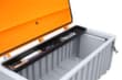 in grijs/oranje. Mobiel inzetbaar. Voor gemakkelijk transporteren uitgerust met vorksloffen. grepen aan kopzijde.