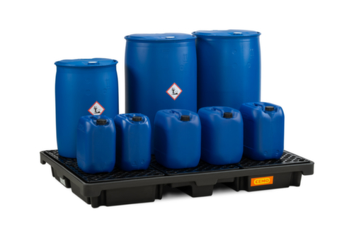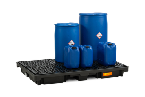 "longDescription": "<h2>Opvangbak van PE</h2><strong>voor 200 liter vaten</strong><br><ul><li>Geschikt voor waterverontreinigende en corrosieve stoffen</li><li>Praktisch uitgerust met roosters</li><li>Hoge chemische weerstand - gemaakt van polyethyleen</li><li>Gemakkelijk transport dankzij vorkheftruckzakken die eronder kunnen worden gereden</li></ul>",