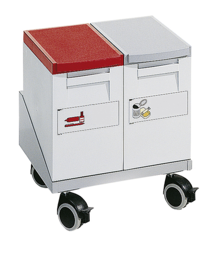 "metaDescription": "Chassis voor 2 recyclebare dozen, voor 15 l bak - v. 2xafvalverzamelbox 15l, laadvl. LxB 400x315mm, frame lichtgrijs, 4zwenkwielen",