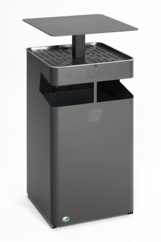 "metaDescription": "Combi-asbak met dak, ijzerglans - HxBxD 920x450x450mm, afvalbak inhoud 72l, romp staal ijzerglans, m. overkapping",