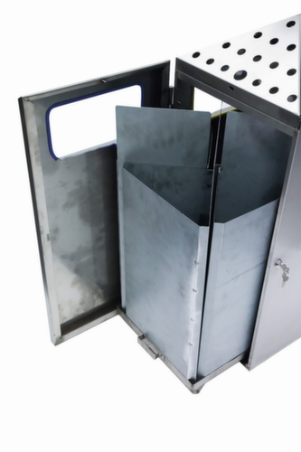 "longDescription": "<h2>Combi Asbak</h2><strong>in aantrekkelijke piramidevorm</strong><br><ul><li><strong>gemakkelijk te reinigen</strong> - alle binnenbakken uitneembaar</li><li><strong>gemakkelijk legen,</strong> de asbak door de kap omhoog te klappen en de afvalbak via de deur</li><li><strong>beveiligd tegen diefstal</strong> door slot</li></ul><br><h3>De keuze is aan jou:</h3><ul><li><strong>robuust of hygiënisch</strong> - van plaatstaal met poedercoating of RVS</li><li><strong>voor het correct wegwerpen van afval</strong> ook verkrijgbaar als scheidingssysteem</li></ul>",