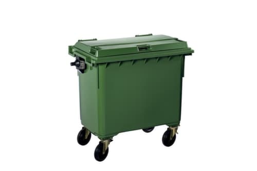 "longDescription": "Vuilnisbak met 4 wielen van high density polyethyleen 770L groen uitsluitend van nieuw materiaal, UV-, koude-, hitte- en chemicaliënbestendig, brede handgrepen aan het deksel, lichtlopende wielen met massief rubberen banden, massieve wielas van staal, gegalvaniseerd, pedaal als accessoire -alleen voor 120L, volgens norm: DIN30740/EN840, ring voor zakhouder -alleen voor 120L<br>",
