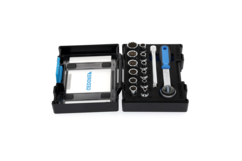 "longDescription": "Met handbediende 12-punts UD profiel doppen en bedieningsgereedschap van vanadium staal 31CrV3, Met extra fijn getande omkeerbare ratel, In kunststof doos, Afmetingen: 160 x 95 x 38 mm<br>",