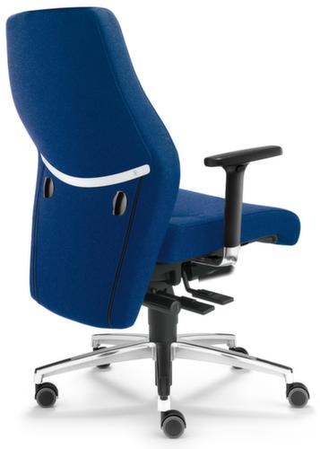 "description": "zitting stof blauw, zitting HxBxD 410-530x500x380mm, m. armleuningen, voetkruis aluminium, wielen",