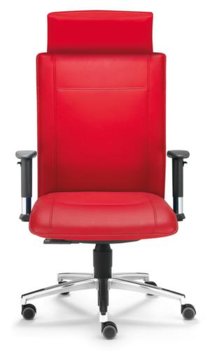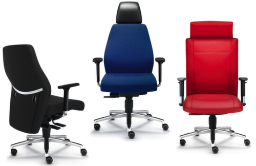 "description": "leer-m. neksteun zwart, zitting stof rood, zitting HxBxD 410-530x500x380mm, m. armleuningen, voetkruis aluminium, wielen",