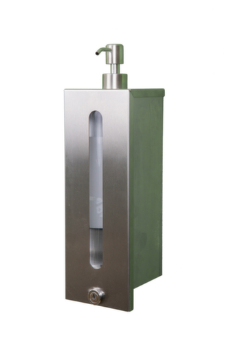 geschikt voor alle (alcoholhoudende) ontsmettingsmiddelen, vloeibare en crèmezepen, lotions en soortgelijke vloeistoffen. met vulpeilindicator, slot. afsluitbaar met veiligheidsslot. van RVS.
