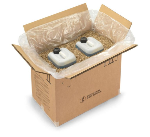 Geschikt voor voor alle gevaarlijke stoffen die in een doos verstuurd mogen worden. Met UN-toelating 4GV voor RID/ADR (land), IMDG-code (zee) en IATA (lucht). van golfkarton. gemaakt van 50 % gerecycled materiaal.