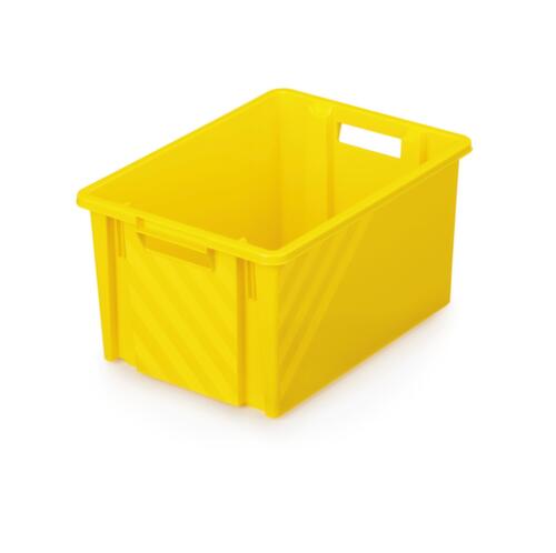 van breukvast polypropyleen in geel. wanden gesloten, bodem gesloten. eenvoudig te dragen door open greep. Nestbaar door 180°-draaiing.
