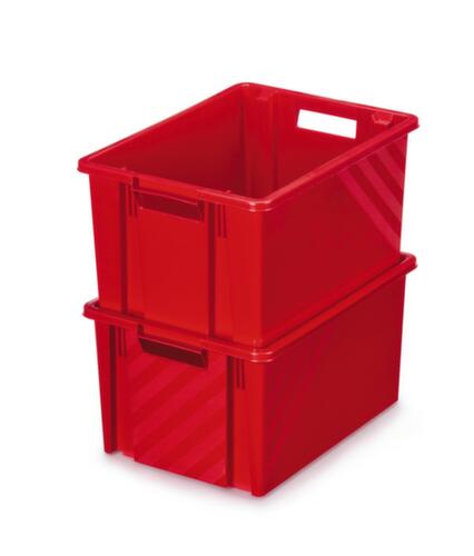 van breukvast polypropyleen in rood. wanden gesloten, bodem gesloten. eenvoudig te dragen door open greep. Nestbaar door 180°-draaiing.