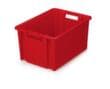 van breukvast polypropyleen in rood. wanden gesloten, bodem gesloten. eenvoudig te dragen door open greep. Nestbaar door 180°-draaiing.