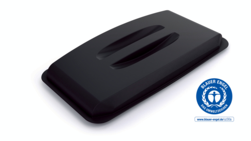 de belangrijkste maten van de Durable afvalbak DURABIN® ECO in één oogopslag:Voor opstelling op de vloer. Met oplegdeksel met greep - de opening gebeurt handmatig. klemgleuf voor de zakbevestiging. Eenvoudig te legen via deksel. romp van kunststof (gerecycled) in zwart. deksel van kunststof (gerecycled) in zwart. draaggrepen aan beide zijden vergemakkelijken het transport. Plaatsbesparend stapelbaar.