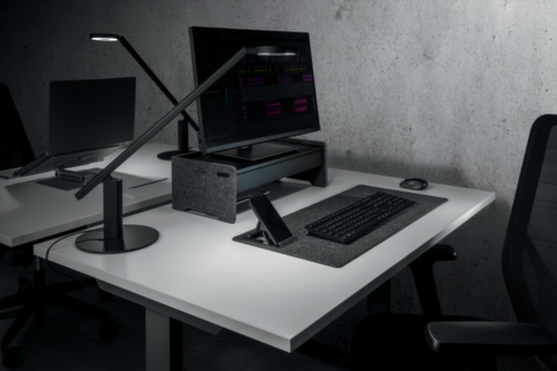 uitgerust met geïntegreerd kabelmanagement. 3-voudig ergonomisch in hoogte verstelbaar. van tot 60 % gerecycled PET-vilt in antraciet.