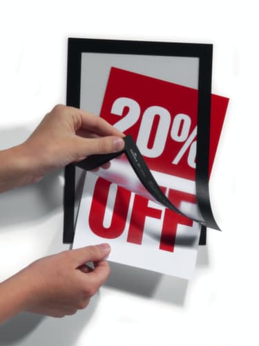 "longDescription": "<h2>Informatie frame DURAFRAME®</h2><strong>om snel en gemakkelijk van sjabloon te veranderen</strong><br><ul><li><strong>gemakkelijk en snel verwisselen</strong> van affiches dankzij magnetische voorkant</li><li>infolijst van kunststof</li><li><strong>past op elke wand</strong> - staand en liggend te monteren</li><li><strong>spatwater- en stofdicht</strong> - met rugfolie voor extra bescherming</li></ul><br><strong>De keuze is aan u: </strong><br>• <strong>zelfklevend of magnetisch</strong> - zelfklevende uitvoering ideaal voor glazen oppervlakken in verband met dubbelzijdige leesbaarheid<br>Het perfecte informatie- en presentatiesysteem! Of het nu gaat om informatie of reclame, de DURAFRAME® magneetlijst van Durable is ideaal voor allerlei soorten mededelingen. Dankzij het scharnierende, magnetische front kunnen de aankondigingen of posters in enkele seconden worden verwisseld.<br><br>De informatieframes zijn optioneel verkrijgbaar met een magnetische of zelfklevende achterzijde. Bevestig de magnetische versie op metalen en magnetische oppervlakken, zoals machines. De folielijsten met de zelfklevende achterkant kleven op alle gladde oppervlakken. Omdat de kaders aan beide zijden bedrukt zijn, is de zelfklevende magnetische lijst ook ideaal om op glasruiten te bevestigen.<br><br>Gebruik het informatiekader in staand of liggend formaat - het maakt niet uit. In de diepte neemt hij geen plaats in omdat hij plat is. Zo past het folielijstje ook in gangen of kleine kamers. <br><br>U kunt de magnetische lijst krijgen in de kleuren zwart en zilver en in verschillende maten.<br>",