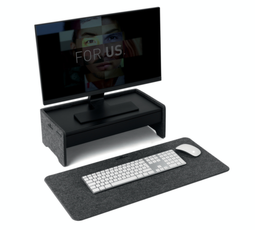 "description": "v. beeldschermstandaard, aanbouw van voren, HxBxD 52x468x221mm, m. viltlaag, insteekbaar, metaal, zwart",