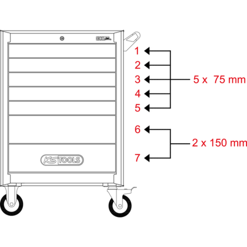 "longDescription": "met zelfsluitende en SOFT-CLOSE functie, stevige plaatstalen constructie met 0,8 mm plaatdikte - torsiebestendig, hoge stabiliteit, zijpanelen met vierkante gaten voor het bevestigen van diverse accessoires, centrale vergrendeling van alle laden d.m.v. cilinderslot, ladegeleiders met kogellagers, laden met 100% uittrekbaar, laden met antislip rubber inleg, werkblad met 10 mm dikke schuimrubberen inleg, met metalen handgreep aan de zijkant, met 2 wielen elk Ø 125 mm, met 2 zwenkwielen elk Ø 125 mm met rol- en draaibare rem, doorlopende greeplijsten, elektrostatisch gepoedercoat, kan gecombineerd worden met bovenkastje<br>",