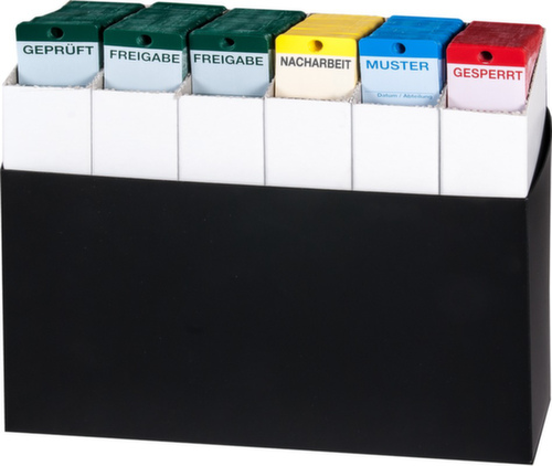"longDescription": "<h2>Goederenlabelset</h2><strong>Voor een snelle organisatie van het magazijn</strong><br><ul><li>Geschikt voor alle plaatsen in het magazijn waar niet genoeg ruimte is om te etiketteren</li></ul><br><h3>Set bestaande uit:</h3><ul><li>600 trailers in totaal:</li><li>100x \"Gesloten\"</li><li>100x \"monster\"</li><li>100x \"Rework\"</li><li>100x \"Release\"</li><li>100x \"Getest\"</li><li>100x neutraal voor vrije labeling</li><li>1 dispenserdoos</li><li>van polypropyleen</li><li>Lijndruk voor etikettering aan alle zijden- Weerbestendig en geschikt voor gebruik buitenshuis</li><li>opschriften gewoon met balpen aan te brengen</li></ul>",