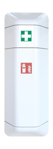 "metaDescription": "EICHNER Noodgevallenkast HELP - HxBxD 1224x434x225mm, leeg/v. 1x defibrillator, kunststof, romp wit, front wit",