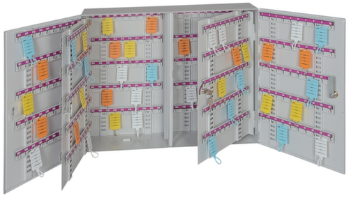 uitgerust met afzonderlijk verstelbare, doorlopend genummerde hakenlijst voor een gebruiksvriendelijke organisatie van sleutels. Via de dubbele openslaande deur is de kast zeer goed toegankelijk. afsluitbaar met cilinderslot. vergrendeling tweezijdig. constructie van plaatstaal. romp met slag- en krasvaste poedercoating in RAL7035 lichtgrijs. front met slag- en krasvaste poedercoating in RAL7035 lichtgrijs. 1DA1E9CBF09DA14CACC1996C68D4375B.