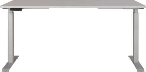 blad van spaanplaat met krasvaste en onderhoudsvriendelijke melamineharscoating in decor decor kasjmier. rand met slagvaste ABS-omranding ter bescherming tegen lelijke barsten en beschadigingen. dubbel T-voetonderstel van metaal met slag- en krasvaste poedercoating in zilverkleurig. frame met nivelleerbare kunststof glijders, ideaal voor het opheffen van oneffenheden in de vloer. Met stroomkabel, stekker en bedieningseenheid elektrificeerbaar.