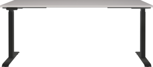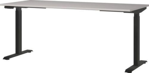 blad van spaanplaat met onderhoudsvriendelijke melamineharscoating in decor decor kasjmier. rand met slagvaste ABS-omranding ter bescherming tegen lelijke barsten en beschadigingen. dubbel T-voetonderstel van metaal met slag- en krasvaste poedercoating in zwart. frame met nivelleerbare kunststof glijders, ideaal voor het opheffen van oneffenheden in de vloer. Met stroomkabel, stekker en bedieningseenheid elektrificeerbaar.