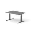 blad van spaanplaat met onderhoudsvriendelijke melamineharscoating in decor MS Slate. plaatvorm rechthoekig. T-voetonderstel in RAL9005 gitzwart. hoogteverstelling door elektromotor met handschakelaar en display. functies: Opslaan en automatisch oproepen van geprogrammeerde tafelhoogtes dankzij memoryfunctie. met eurostekker.