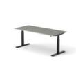 blad van spaanplaat met onderhoudsvriendelijke melamineharscoating in decor MP Platinum. plaatvorm rechthoekig. T-voetonderstel in RAL9005 gitzwart. hoogteverstelling door elektromotor met handschakelaar. met eurostekker.