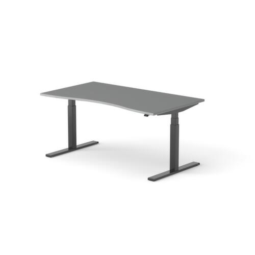 blad van spaanplaat met onderhoudsvriendelijke melamineharscoating in decor MS Slate. plaatvorm gewelfd. T-voetonderstel in RAL9005 gitzwart. hoogteverstelling door elektromotor met handschakelaar. met eurostekker.