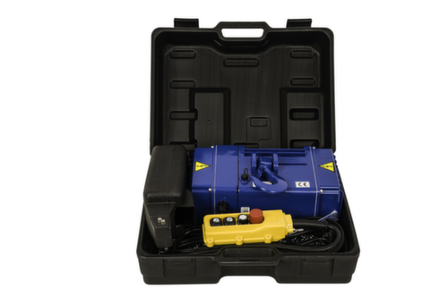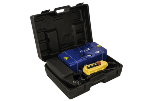 "longDescription": "<h2>Elektrische kettingtakel</h2><strong>gemakkelijk te vervoeren dankzij het lichte en compacte ontwerp</strong><br><ul><li>Nauwkeurige positionering dankzij zachte aanloop</li><li>Overbelastingsbeveiliging door slipkoppeling</li><li>Eindschakelaar voor bovenste en onderste haakpositie</li><li>Geleverd met kettingmagazijn voor 3 m standaardlift en transportkoffer, HxBxD 200x390x470 mm</li></ul>",