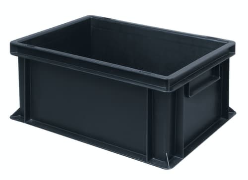 Door zijn geleidbaarheid is deze stapelbak speciaal voor de opslag en het transport van elektronische onderdelen geschikt. Eventuele stroom wordt afgeleid waardoor de transportgoederen zijn beschermd tegen schade door elektrische lading.