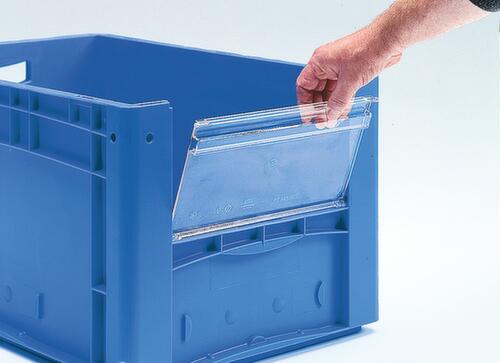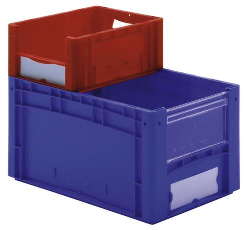 "title": "BITO Euronorm zichtbare opslagcontainer met toegangsopening, blauw, HxLxB 420x600x400 mm",