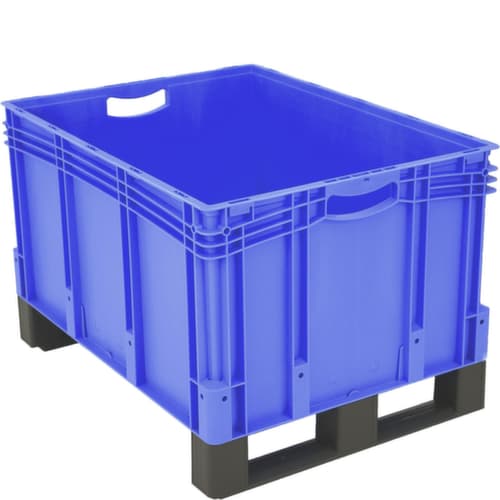 maten afgestemd op europallet. van breukvast polypropyleen in blauw. Wanden gesloten, bodem dubbel verstevigd. eenvoudig transport door open greep. met etikethouder aan alle zijden. Meervoudig stapelbaar. geschikt voor levensmiddelen. Geschikt voor verschillende stoffen, gelieve aan te vragen.