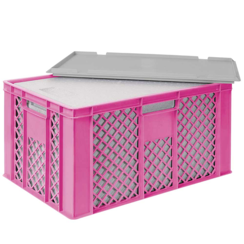 de belangrijkste maten van de stapelbak in één oogopslag:In euromaat. van hogedruk-polyethyleen (isoleerbox van geëxpandeerd polystyreen) in violet. wanden doorbroken. oplegdeksel voor interne isoleerbox. eenvoudig transport door open greep. Zowel met als zonder deksel veilig meervoudig stapelbaar. geschikt voor levensmiddelen. Temperatuurbestendig -40 °C tot +60 °C, korte tijd tot +75 °C. Geschikt voor zuren, basen en vetten.
