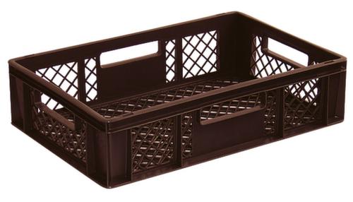 maten afgestemd op europallet. van breukvast polypropyleen in bruin. Wanden doorbroken, bodem doorbroken. Bodem met versteviging door verstevigingsribben. eenvoudig transport door verzonken greep. Meervoudig stapelbaar. geschikt voor levensmiddelen. Geschikt voor rollenbanen. Temperatuurbestendig -20 °C tot +80 °C. Geschikt voor verschillende stoffen, gelieve aan te vragen.