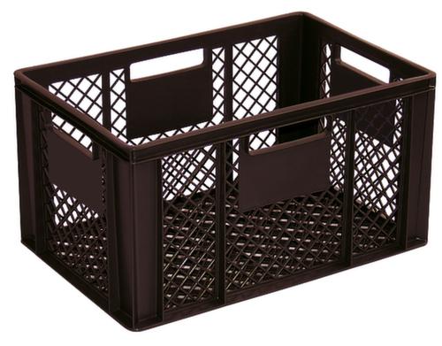 maten afgestemd op europallet. van breukvast polypropyleen in bruin. Wanden doorbroken, bodem doorbroken. Bodem met versteviging door verstevigingsribben. eenvoudig transport door verzonken greep. Meervoudig stapelbaar. geschikt voor levensmiddelen. Geschikt voor rollenbanen. Temperatuurbestendig -20 °C tot +80 °C. Geschikt voor verschillende stoffen, gelieve aan te vragen. recyclebaar.