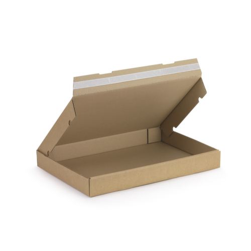 }Extra platte doos met zelfklevende sluiting bruin Raja 43 x 31 x 5 cm