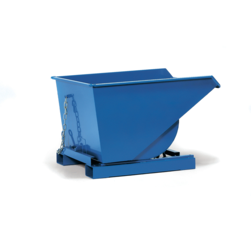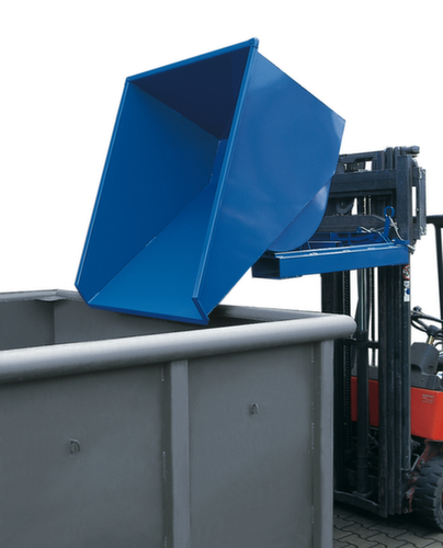 De belangrijkste maten van de fetra kiepbak in één oogopslagHandig kiepen vanaf de bestuurdersstoel dankzij trekkoordontgrendeling. Na het legen zwenkt de kiepbak automatisch terug naar de uitgangspositie en de kantelbeveiliging klikt weer automatisch vast. Met een beveiligingsketting aan de vorksloffen van de heftruck kan de kiepbak extra worden beveiligd tegen wegglijden . De kiepbak is ook geschikt voor de opname van vloeistoffen - olie en waterdicht gelast. Opgevangen vloeistoffen, zoals olie of water, worden door een zeef van de vaste stoffen gescheiden en kunnen met een kraan worden afgetapt zonder de container te kantelen. Hierdoor wordt veel tijd bespaard. Robuuste constructie van staal gelakt in RAL5007 briljantblauw. Om de kiepbak gemakkelijk te transporteren en te legen, tilt u hem eenvoudig met een heftruck op via de vorksloffen en rijdt u hem naar de gewenste plek en de vereiste hoogte.