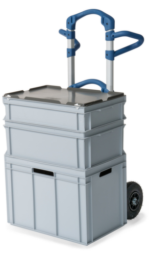 steekplaat in-/uitklapbaar. ladingbeveiliging door gewelfde achterwand. Ronde goederen, zoals vaten, banden en goederen op rol liggen tijdens het transport stevig tegen de gebogen rugschoren. constructie van aluminium/kunststof. onderstel in grijs/blauw. met Beugelgreep en twee aan de zijkant gemonteerde, ergonomische handgrepen van handvriendelijk materiaal. Hierdoor kan de steekwagen met lading altijd veilig en comfortabel worden gebruikt. De greeppositie is afhankelijk van de rijsituatie en lichaamslengte individueel af te stemmen en de handen zijn goed beschermd tegen knellen en schaven. wielen met vloervriendelijke en geluidsarme lucht-banden. wiel Ø 225 mm. wielnaaf met voor continu gebruik geschikte kogellager.Onze klantenservice helpt u graag verder.