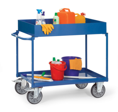 "title": "fetra Tafelwagen met oliedicht gelaste plaatstalen bakken 1000x700 mm, draagvermogen 400 kg, 2 etages",