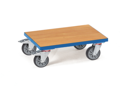 Ideaal voor euronorm-bakken. platform van hout Het frame sluit perfect aan op het platform, RAL5007 briljantblauw. onderstel met slag- en krasvaste poedercoating in RAL5007 briljantblauw. staalconstructie, gelast. Gemakkelijk te manoeuvreren en verrijden door 4 zwenkwielen. De rem aan 2 zwenkwielen zorgen voor een stevige stand. wiel Ø 125 mm. met vloervriendelijke TPE-banden. wielnaaf met lichtlopende en onderhoudsvrije groefkogellager.
