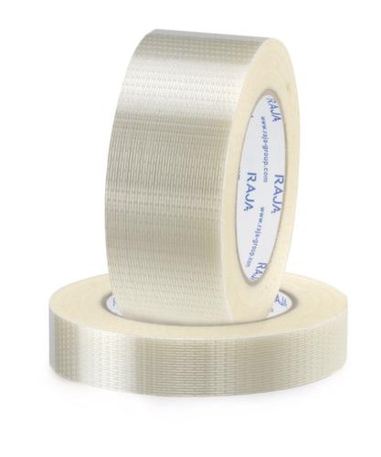 "title": "Filamenttape in de lengte en in breedte versterkt, lengte x breedte 50 m x 25 mm",