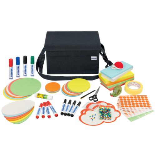 "longDescription": "<h2>Franken presentatietas</h2><h3>praktische hulp bij presentaties</h3><p>Ideaal voor coaches en presentatoren om op locatie seminars, presentaties, workshops of trainingen te geven. Het complete presentatiemateriaal is niet alleen praktisch bij de presentatie zelf, maar kan ook inspireren en helpen om bij de voorbereiding een basisstructuur voor de presentatie te ontwikkelen. </p><strong>Belangrijke details en kenmerken van de Franken presentatieuitrusting</strong><ul><strong>set bestaande uit:</strong> <ul><li>20 mini-wolken, 14 x 23 cm</li><li> 500 rechthoekige kaarten, 9,5 x 20,5 cm</li><li> 200 ovale, 11 x 19 cm</li><li> 200 ronde, Ø 9,5 cm</li><li> 150 ronde, Ø 14 cm</li><li> 150 ronde, Ø 19,5 cm</li><li> per 520 markeringspunten in rood en groen</li><li> 8 Flipchartmarkers, 4 zwarte en 4 rode</li><li> 4 Jumbomarkers, een rode, groene, blauwe en zwarte</li><li> 1 afplaktape</li><li> 1 plakbandhouder</li><li> 2 lijmstiften</li><li> 300 punaises met ronde kop</li><li> 1 naaldkussen</li><li> 1 aanwijsstok</li><li> 1 schaar</li><li> 1 cutter</li></ul></ul><p>De praktische indeling is uitneembaar en vouwbaar en zorgt voor een veilige grip en overzicht van de gehele inhoud. handvat. </p><li>hoogte x breedte x diepte 230 x 355 x 200 mm</li><li>in antraciet</li>",