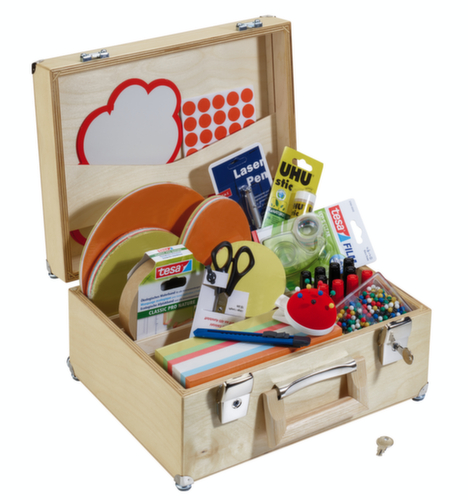 "longDescription": "<h2>presentatiekoffer</h2><strong>goed uitgerust voor elke gematigdheid</strong><br><br><h3>Uitrusting:</h3><ul><li>10 flipchart markers (6x zwart en 4x rood)</li><li>300 speldennaalden met ronde kop</li><li>1040 markeerpunten (520x rood en 520x groen)</li><li>Presentatiekaarten: 500 rechthoeken 95 x 205 mm, 100 cirkels Ø 95 mm, 100 cirkels Ø 140 mm, 50 cirkels Ø 195 mm, 100 ovalen 110 x 190 mm, 5 wolken 740 x 230 mm</li><li>1 crêpetape</li><li>1 zelfklevende filmdispenser</li><li>1 lijmstift</li><li>1 speldenkussen</li><li>1 schaar</li><li>1 knipper</li><li>1 laseraanwijzer met balpen</li></ul><br><h3>Koffer:</h3><ul><li>Gemaakt van berkenhout in natuurlijke look</li><li>met draaggreep</li><li>met bodembeschermende vilten glijders</li></ul><br><h3>Deksel:</h3><ul><li>afsluitbaar</li></ul>",