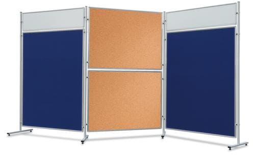 "longDescription": "<h2>Scheidingswandsysteem</h2><strong>Presentatiebord en scheidingswand in één</strong><br><ul><li>Modulair systeem maakt individualiteit en eindeloze uitbreiding mogelijk</li><li>Modern ontwerp - frame van zilverkleurig geanodiseerd aluminium met grijze kunststof hoeken</li><li>Slag- en krasbestendig - stalen steunkolom met poedercoating</li><li>Eenvoudige montage - bevestig het bord aan de steunkolom met behulp van de meegeleverde montageset</li></ul><br><h3>Je hebt de keuze:</h3><ul><li>Schrijfoppervlak in wit, droog uitwisbaar, magnetisch</li><li>Vilt oppervlak in blauw of grijs, pinable</li><li>Kurk oppervlak, pinable</li></ul><br>Dit verplaatsbare wandsysteem van het merk Franken biedt u veelzijdige combinaties en gebruiksmogelijkheden. De bordelementen zijn naar keuze aan beide zijden voorzien van schrijfvlak, viltbekleding of kurk. U hebt met deze wand een groot aantal plaatsingsmogelijkheden en hij kan in bijna elke hoek worden opgesteld, zodat hij perfect in uw kamer past. Bovendien kan hij op elk moment met een eenvoudige klem- en schroefmontage worden uitgebreid en zo aan uw behoeften worden aangepast. Het systeem kan worden gebruikt als scheidingswand, maar ook als informatie- of presentatiewand.<br><br>Het schrijfvlak is droog uitwisbaar en magnetisch. Zowel het kurkoppervlak als het vilten oppervlak kunnen worden vastgespeld. Het frame van het bord is gemaakt van zilverkleurig geanodiseerd aluminium met kunststof hoekstukken. De kolommen zijn gemaakt van stalen buizen met poten. De robuuste constructie maakt hem ook geschikt voor langdurig gebruik in productie- of opslagruimten. Op de juiste manier gebruikt op beursstands of tentoonstellingen, in de ontvangstruimte of op evenementen, is uw informatie altijd perfect geplaatst en gepresenteerd.<br><br><strong>Goed om te weten!</strong><br>Let op: de stijlen voor het verplaatsbare scheidingswandsysteem moeten apart worden besteld. Als u de scheidingswanden regelmatig moet verplaatsen, bestel dan ook meteen een wielenset met rem.<br>",