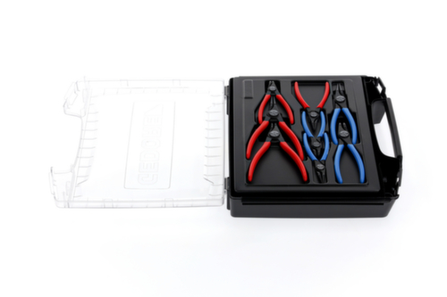 "longDescription": "Praktische setcombinatie, Bijzonder geschikt voor moeilijk bereikbare plaatsen, Voor interne en externe borgringen, Met rechte en 90° gehoekte bekken, In GEDORE i-BOXX® 72, met transparant deksel voor een snel overzicht, Afmetingen: B 367 x D 316 x H 72 mm<br>",