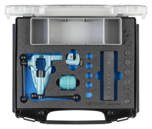 "longDescription": "Voor genormaliseerde precisiefrezen volgens DIN 74234, Voor remleidingen, hydraulische leidingen en dergelijke met een wanddikte van 0,7 tot 1,0 mm, Huis van smeedbaar gietijzer GTW 40, Blauw gelakt, Complete set voor zowel metrische als Engelse pijpen, Met buissnijder 4-32 mm Ø en kleine buissnijder 4-16 mm Ø, In GEDORE i-BOXX® 72 Nr. 1101 L, Afmetingen: B 367 x D 316 x H 72 mm<br>",