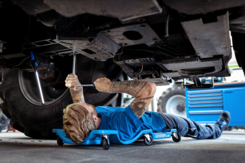 "longDescription": "De stabiele montage-/werkplaatsbank is een goede hulp overal waar liggend gewerkt moet worden, Met praktische transportgreep, Gemaakt van huidvriendelijk PP (polypropyleen) - bestand tegen oliën, vetten en remvloeistof, De 6 kogelgelagerde 360°-wielen en de lage bouwhoogte maken het heel gemakkelijk om de werkplaatsbank in smalle en slecht toegankelijke werkruimtes te rollen, Werken zonder vermoeidheid, met comfortabele hoofdpositie op hoofd/nek kussen, Diepe uitsparing geeft het lichaam extra veilige ondersteuning en maximale bewegingsvrijheid, 2 uitsparingen (rechts/links) in optimaal handbereik voor directe toegang tot het werkgereedschap en kleine onderdelen, Temperatuurbereik: -30 °C tot +60 °C, Comfortabele lighouding door ergonomisch gevormd en aangenaam gestructureerd oppervlak van de stabiele kunststof carrosserie, Hoogwaardige en duurzame wielen, Stootvastheid en duurzaamheid door de productie van het ligvlak in het blaasgietproces, Het ergonomisch gevormde ligvlak voorkomt rugpijn en spanning en door de opbergruimtes links en rechts is het gereedschap altijd binnen handbereik, Draagvermogen 130 kg<br>",