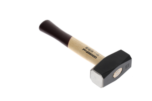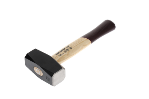 "longDescription": "Gesmede hamerkop, zwart gelakt, gemaakt van gehard staal, slagvlak inductief gehard voor hard continu gebruik, ontwerp volgens DIN 6474, permanente markering van DIN, fabrikant en gewicht, veiligheidsafschuining op het blad zorgvuldig geslepen tot 45°, dubbel gebogen essenhouten handvat, gelakt handgreepuiteinde verbetert de haptiek, ringwig fixeert de hamerkop door 360° klemkracht.<br>",