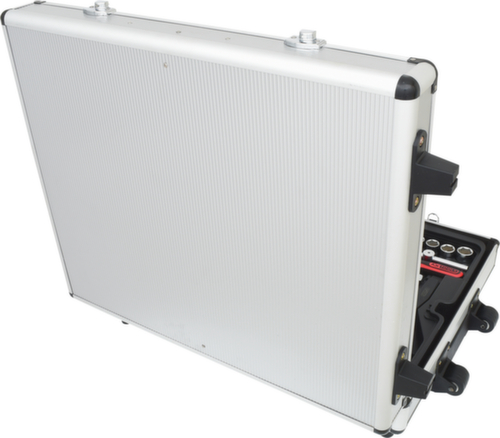 "longDescription": "Zeskantig, FlankTraction profiel, met uitneembare kunststof inzetstukken, mat satijnglanzend, chroom vanadium, handgreep met telescopische uittrekfunctie, in elegante aluminium trolley<br>",